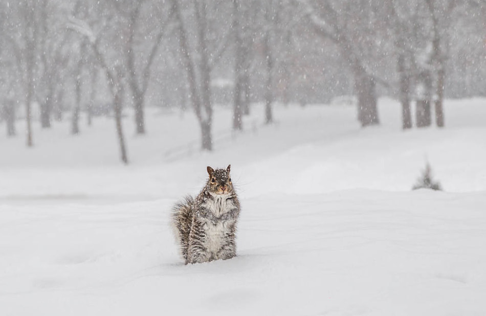 Montréal l’hiver – un écureuil vient à votre rencontre