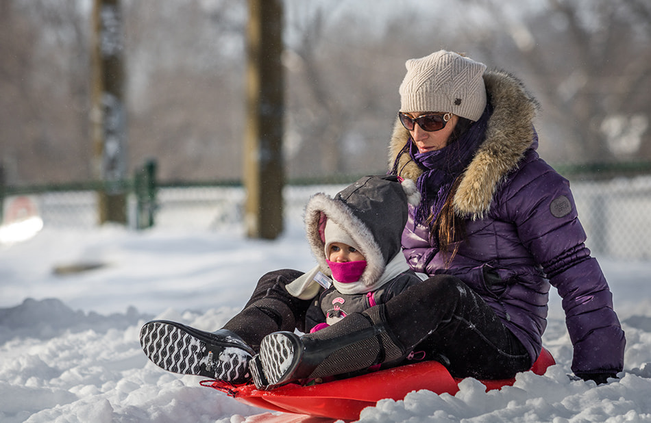 Montréal l’hiver – les joies de la luge dès la petite enfance : savoir glisser avant de marcher!